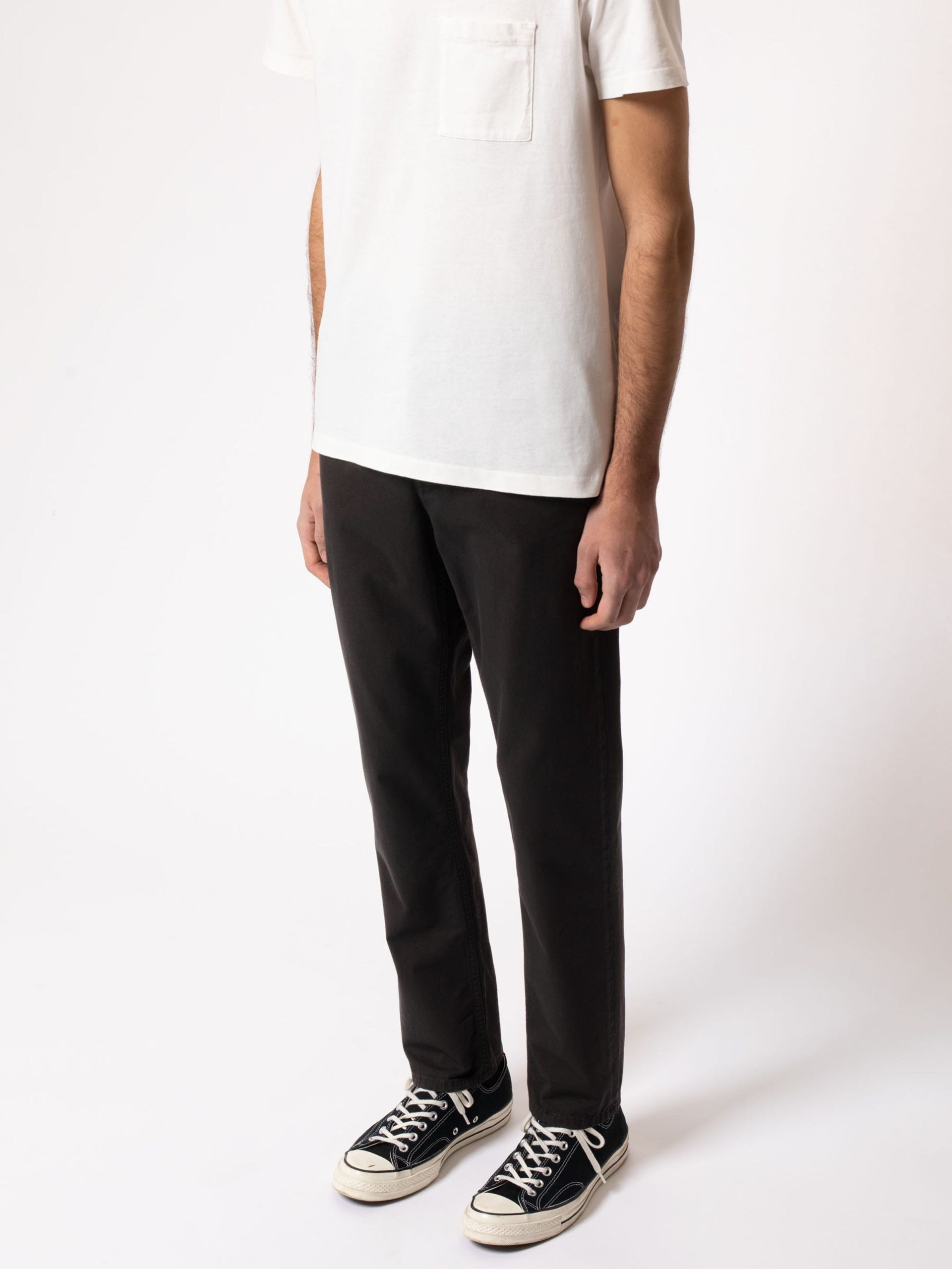 Slim fit four-pocket chino made in organic comfort stretch twill.